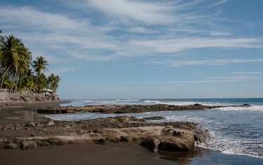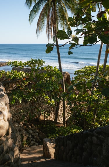 Set directly on the beach and surrounded by coconut palms and tropical almond trees, Maite Beach blends thoughtful architecture with raw coastal beauty. Wake up to ocean views, spend the day by the infinity pool, and end your evening under our iconic Da Vinci-style palm rooftop overlooking the Pacific.