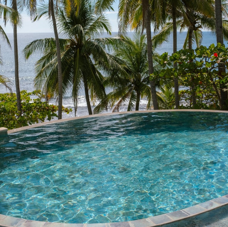 Newly inaugurated in February 2026, the property features two exquisite suites with a unique design palm-leaf rancho on top, all overlooking the pool and beach. Our infinity pool faithfully blends with the Pacific Ocean.